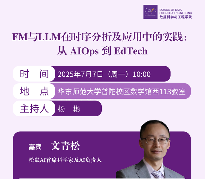 7月7日学术报告 | FM与LLM在时序分析及应用中的实践:从 AIOps 到 EdTech