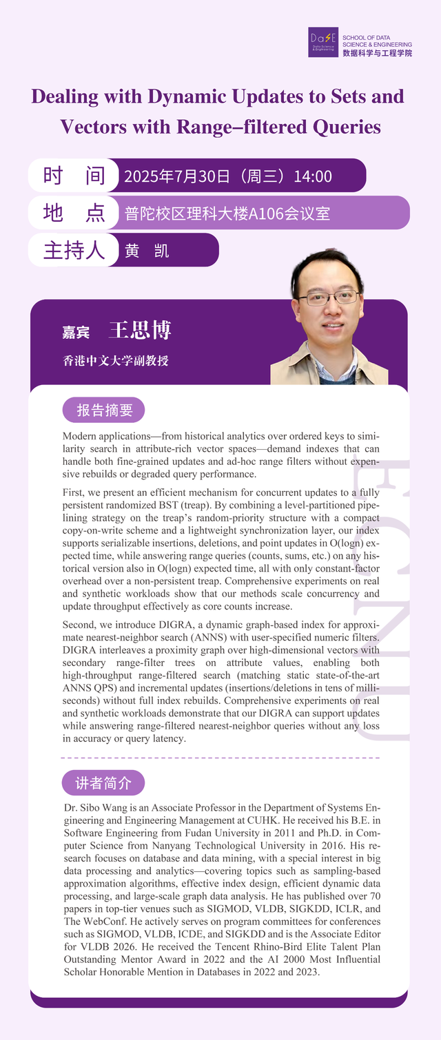 7月30日学术报告 | 基于范围过滤的集合和向量动态更新技术