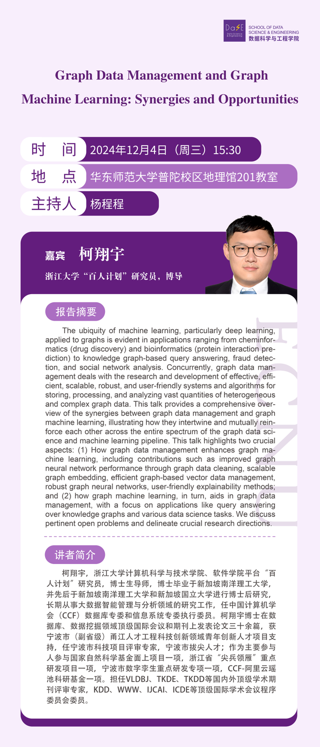 12月4日学术报告 | Graph Data Management and Graph Machine Learning: Synergies and Opportunities