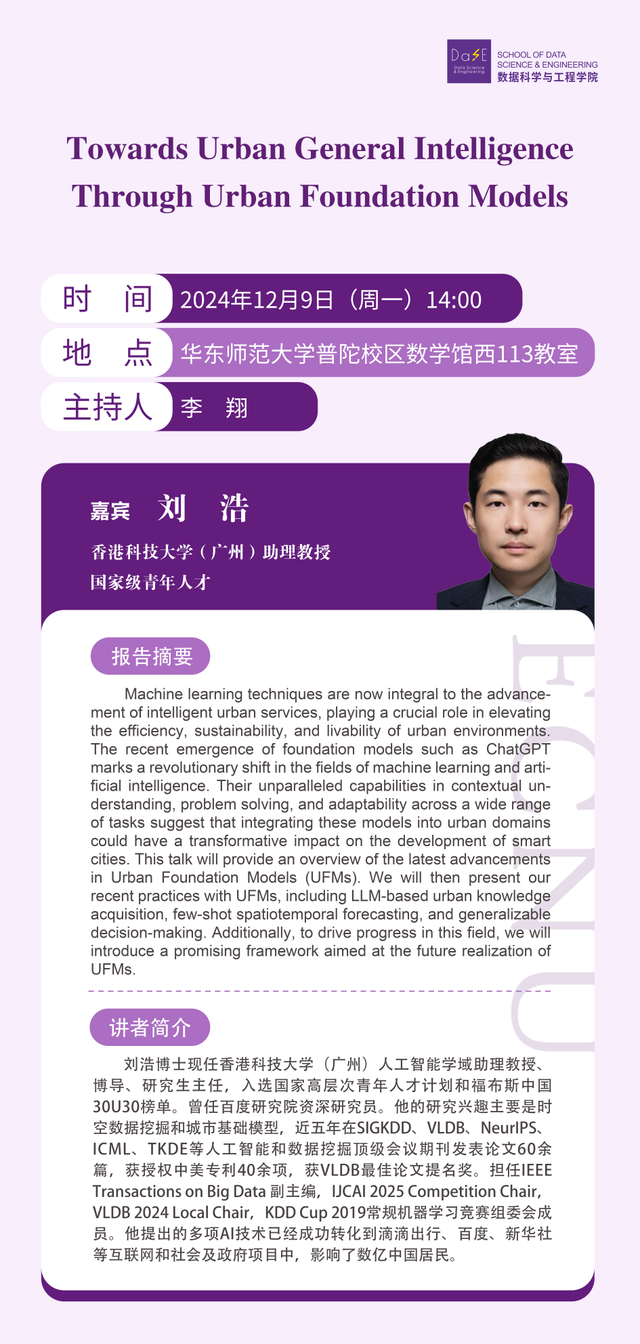12月9日学术报告 |Towards Urban General Intelligence Through Urban Foundation Models