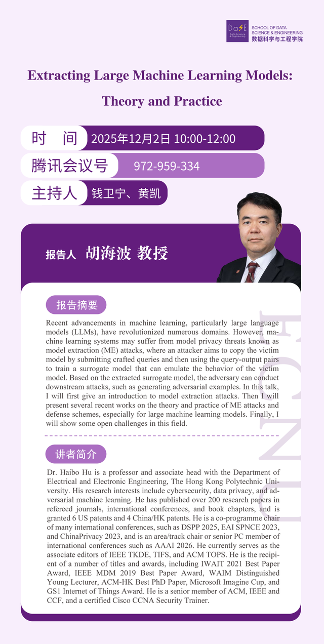 12月2日学术报告 | Extracting Large Machine Learning Models: Theory and Practice