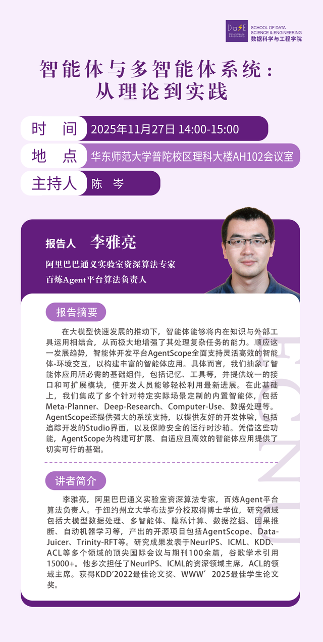 11月27日学术报告 | 智能体与多智能体系统:从理论到实践