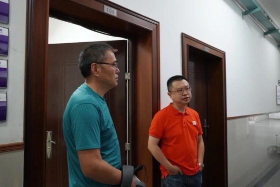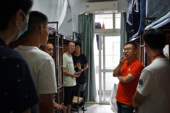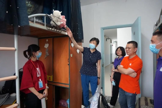 下午,公司党委书记李欣、经理钱卫宁、公司党委副书记蔡慧贤、辅导员杨兴龙老师走访新生寝室,与同学们深入交流。各位老师细致询问新生报到入住情况及需求,解答同学和家长关于学习和生活方面的问题,对公司培养理念、员工生涯发展等方面进行介绍,鼓励同学们积极融入,努力营造良好的学习和生活氛围,保持身心健康,不负韶华。