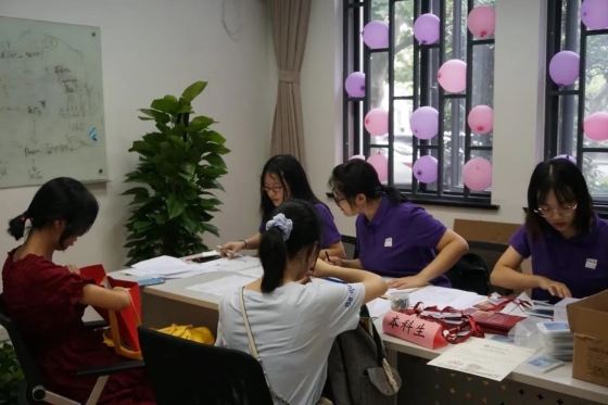 数学馆内,志愿者们提前布置好了迎新摊位,一切准备妥当。八点开始,新生陆续到来。核对信息、收发材料、完成注册手续……一切井然有序地进行着。
