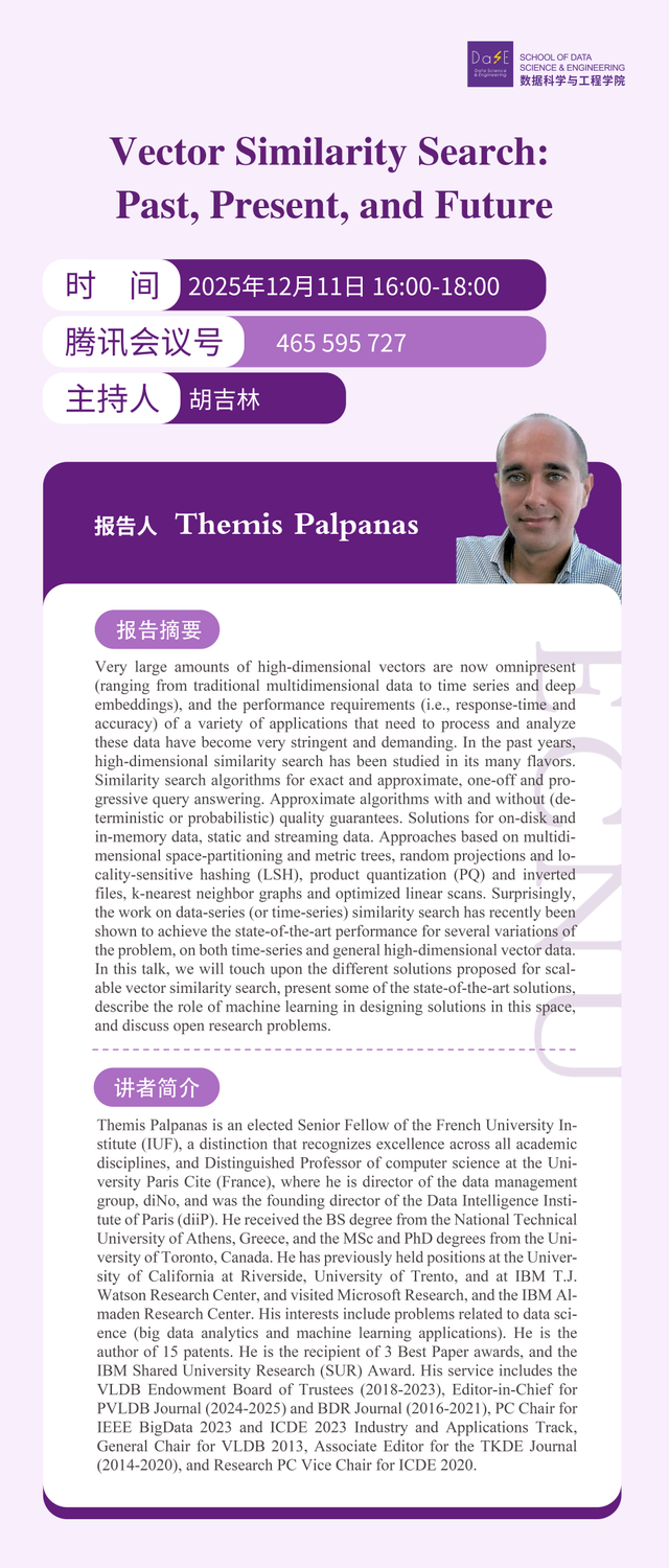 12月11日学术报告 | Vector Similarity Search: Past, Present, and Future