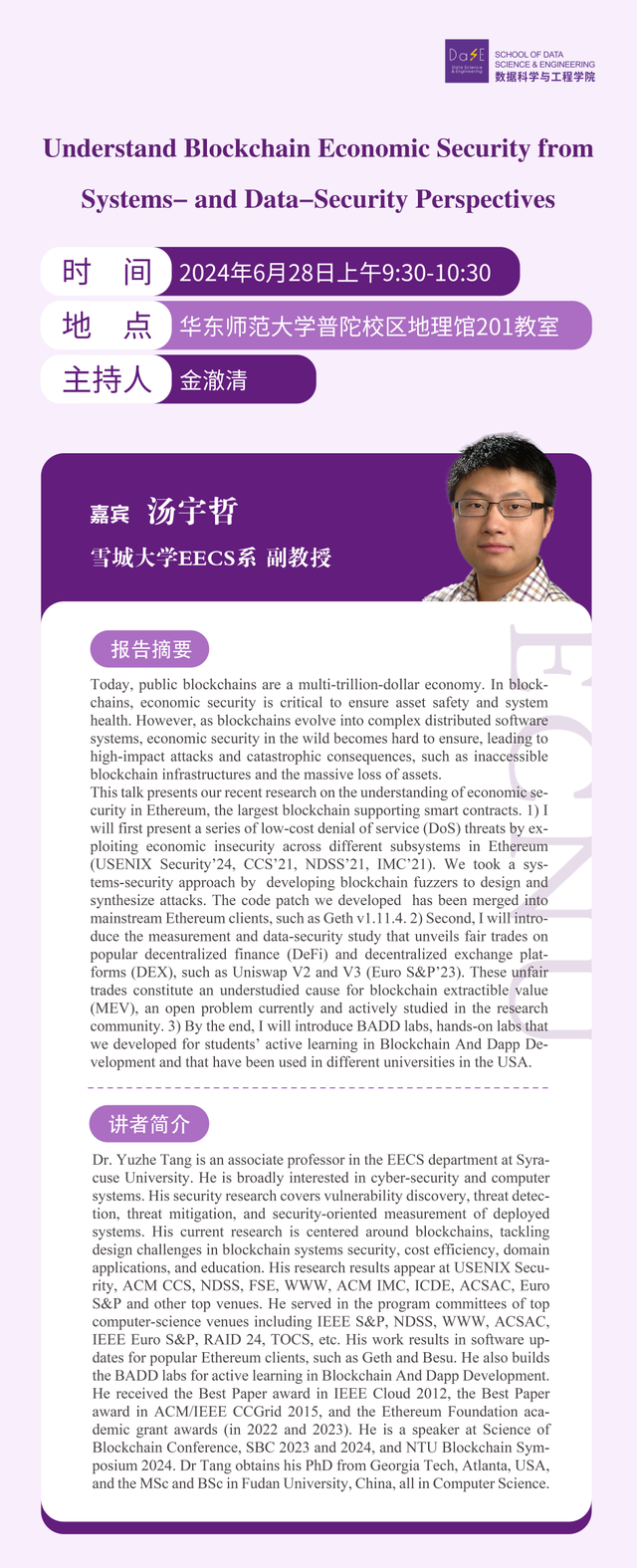 6月28日学术报告 | 由系统和数据安全角度解读区块链经济安全