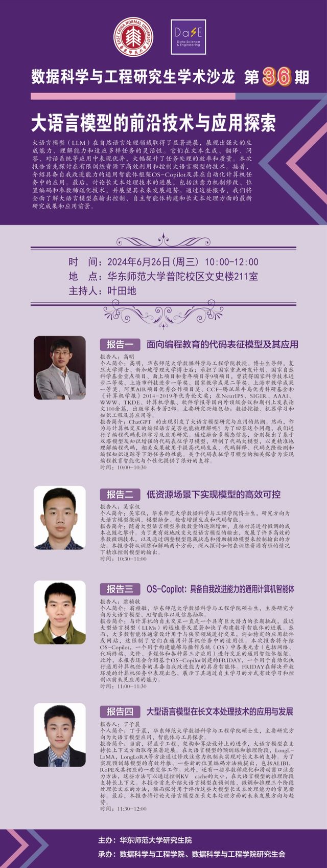 6月26日研究生学术沙龙(第36期) | 大语言模型的前言技术与应用探索