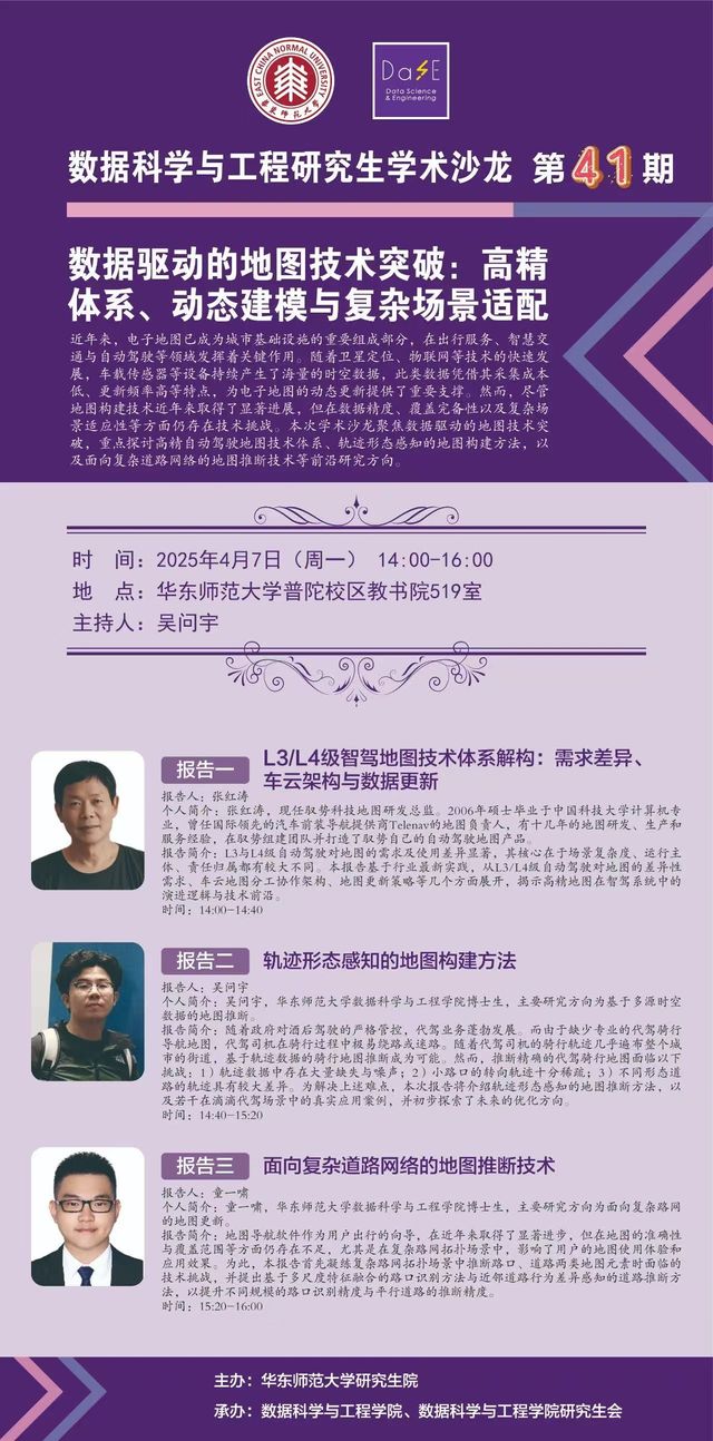 4月7日研究生学术沙龙(第41期) | 数据驱动的地图技术突破