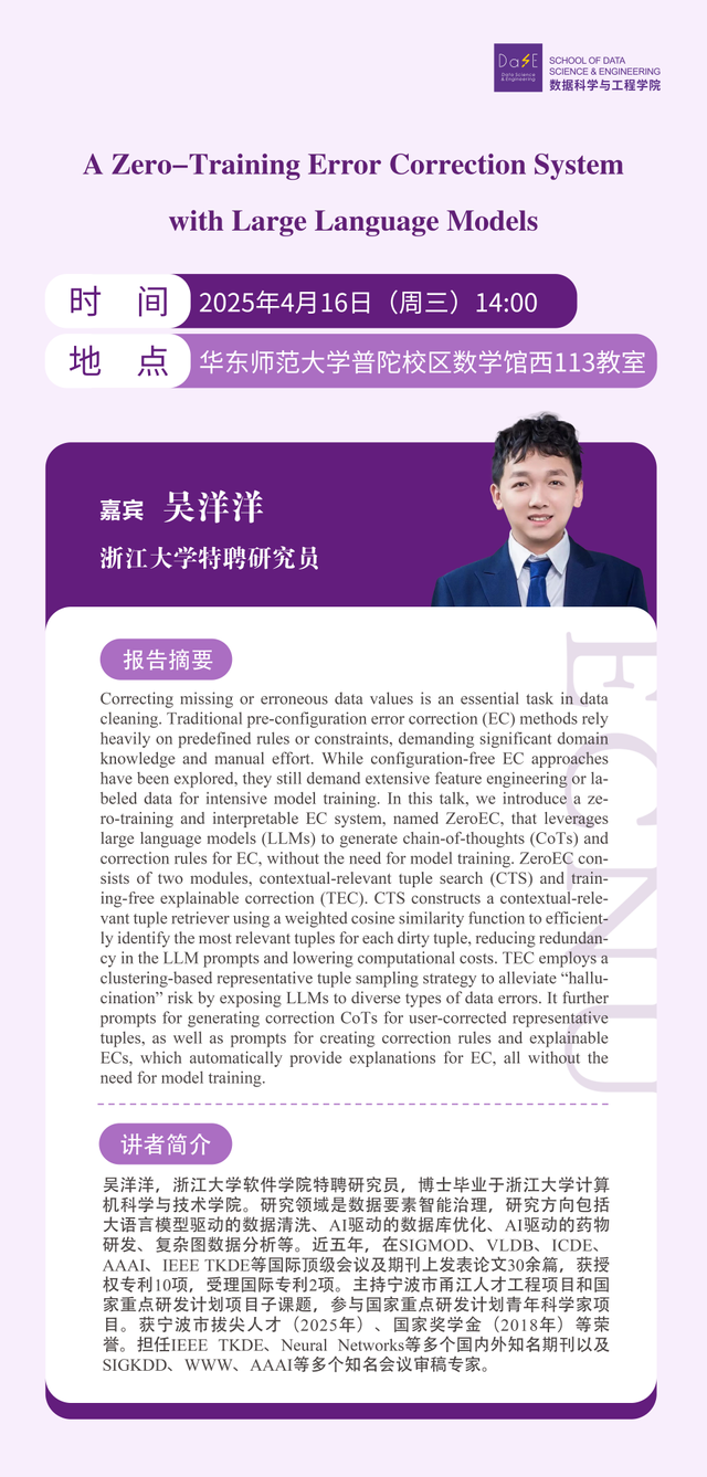 4月16日学术报告 | A Zero-Training Error Correction System with Large Language Models