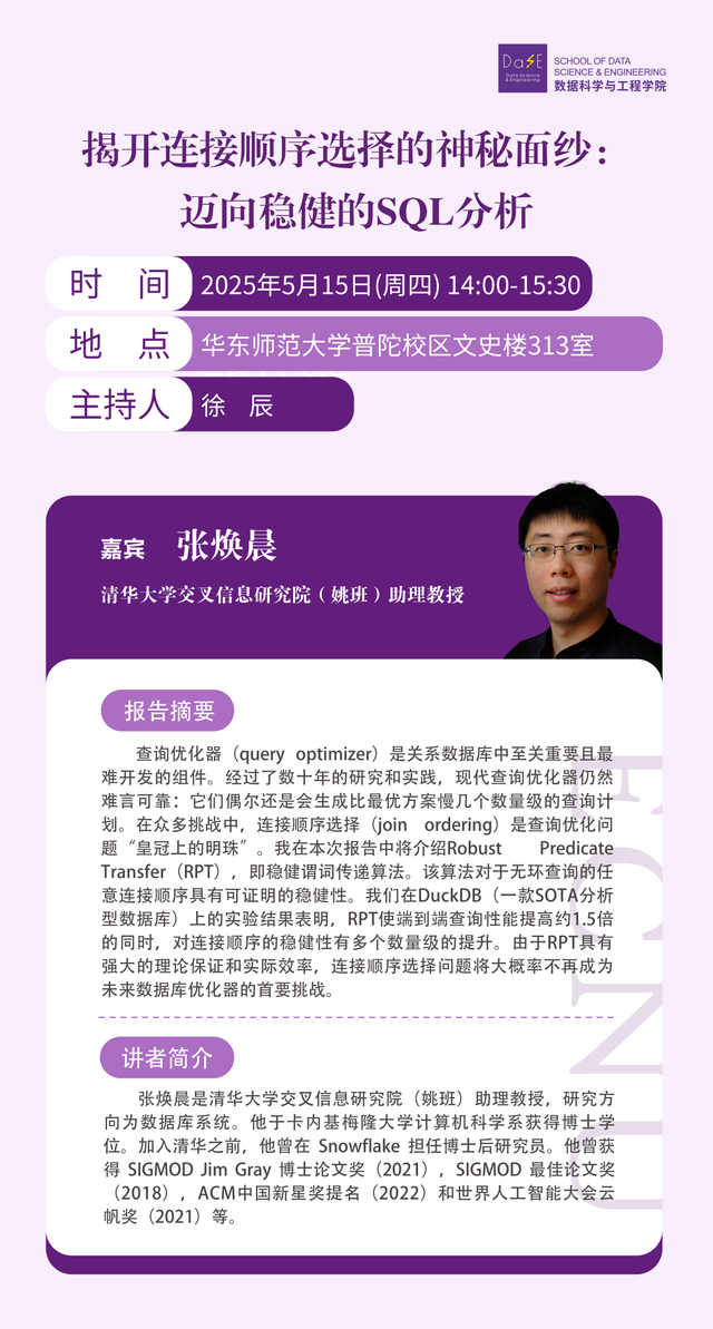 5月15日学术报告 | 揭开连接顺序选择的神秘面纱:迈向稳健的SQL分析
