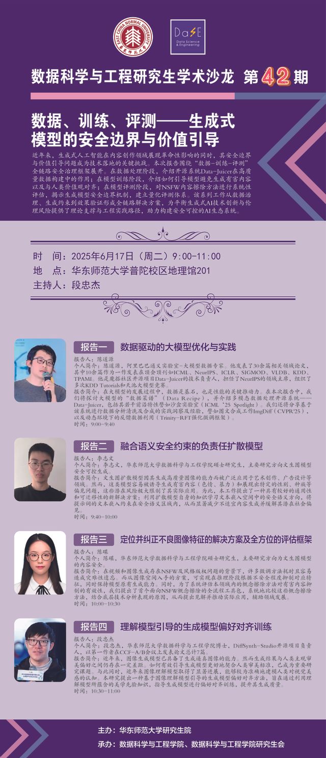 6月17日研究生学术沙龙(第42期) | 数据、训练、评测——生成式模型的安全边界与价值引导