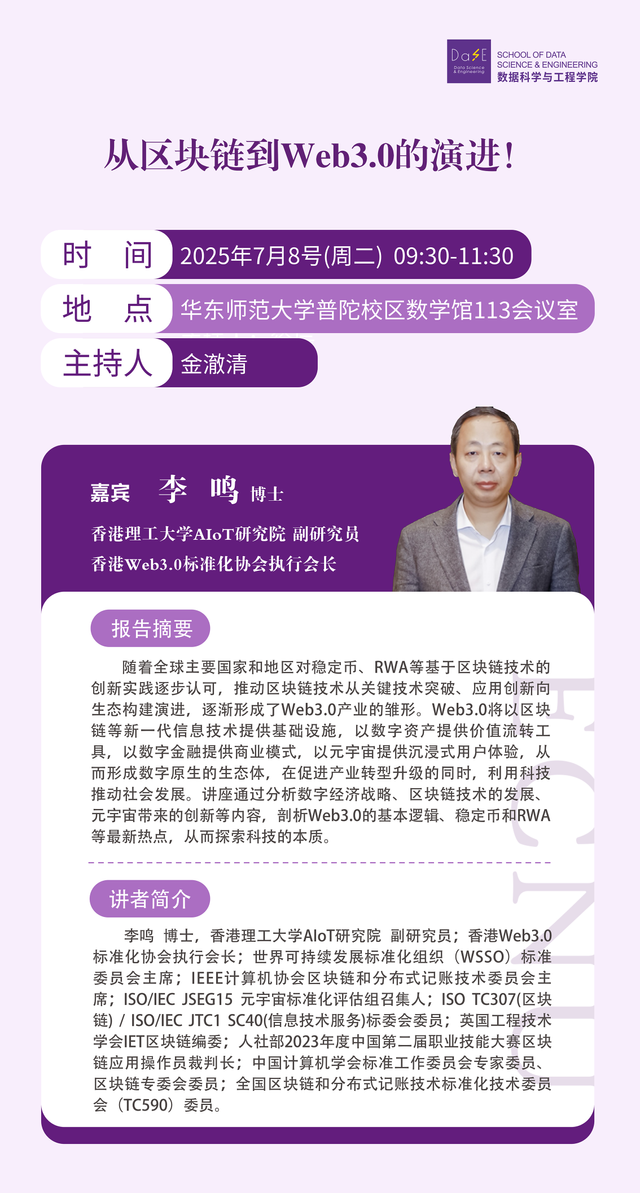 7月8日学术报告 | 从区块链到Web3.0的演进