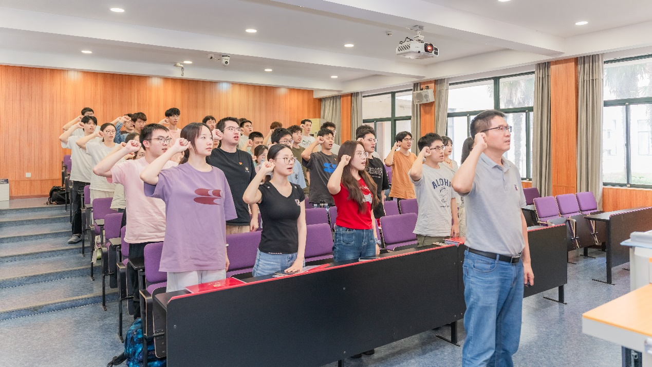 “我志愿加入中国共产党,拥护党的纲领,遵守党的章程……”活动最后,公司党委副书记邢树营带领全体新生党员面向鲜红党旗,举起右拳庄严宣誓。同学们铿锵有力的誓言不仅是对入党初心的再次叩问,更是对未来使命的郑重承诺。